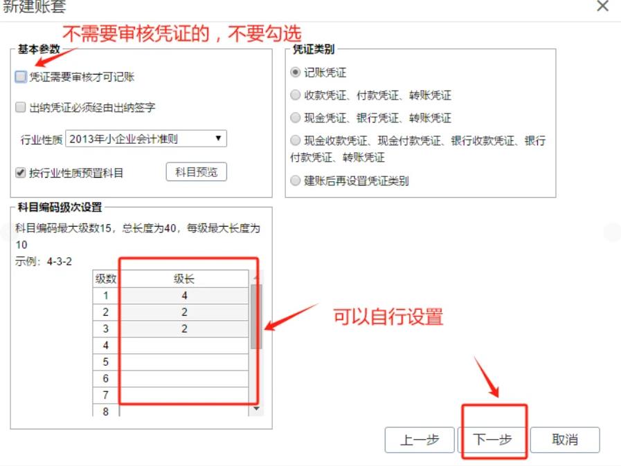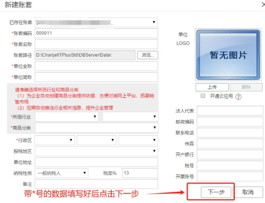 2. 新建账套:点击“账套管理-新建账套”,填账套编码、名称(带*必填),点下一步。
